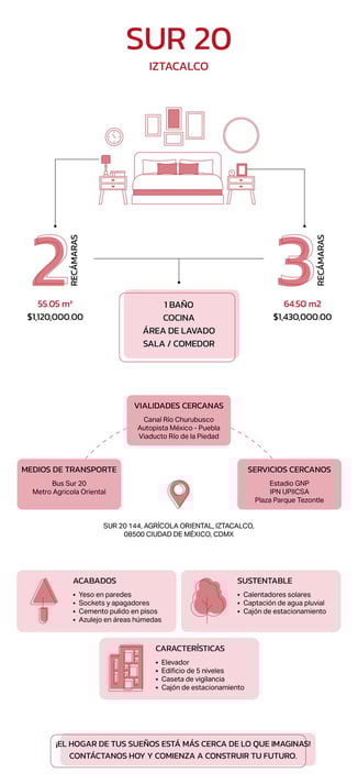 Vive en una de las zonas con mayor crecimiento y conectividad de la Ciudad de México. Nuestros departamentos en preventa te ofrecen la oportunidad de disfrutar de fácil acceso a las principales vías y transporte público, además de estar cerca de centros comerciales y servicios.